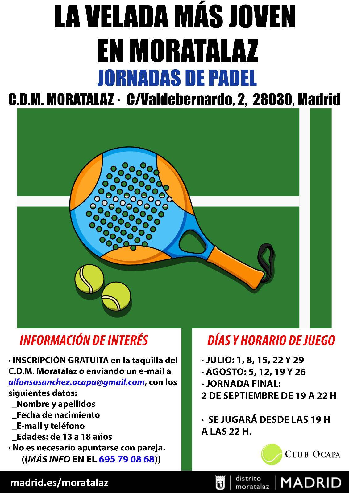LA VELADA MÁS JOVEN PÁDEL EN JULIO Y AGOSTO
