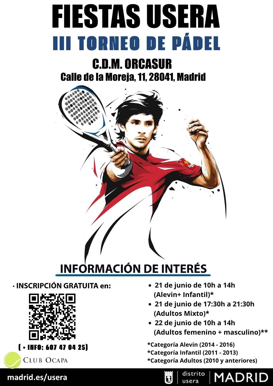 III TORNEO DE PÁDEL GRATUITO FIESTAS USERA 2025